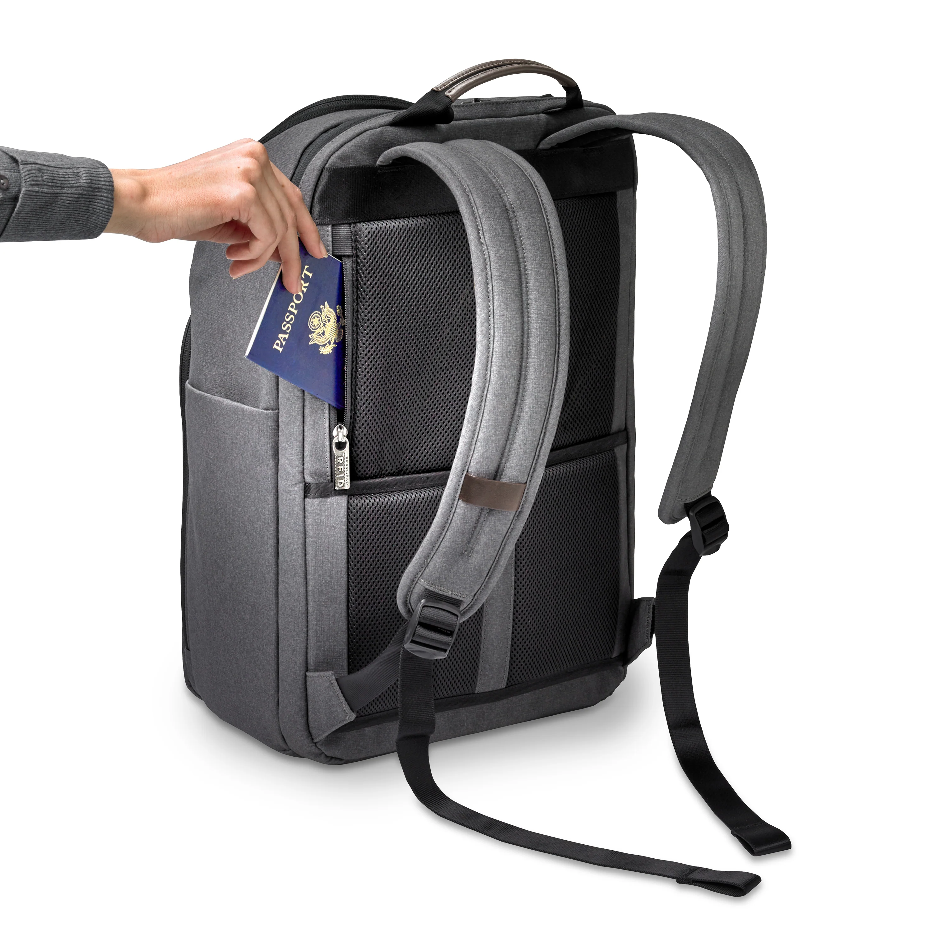 - Slip-through back panel allows bag to slide over any Briggs & Riley Outsider® handle for fast, convenient travel.